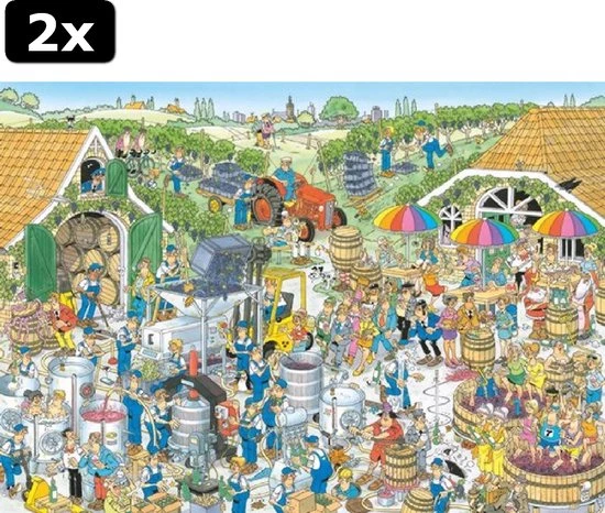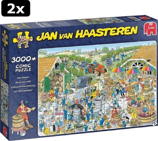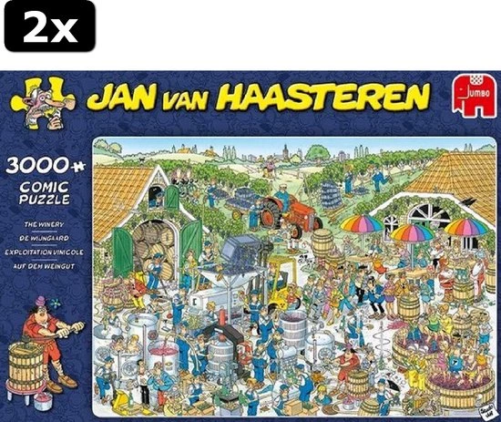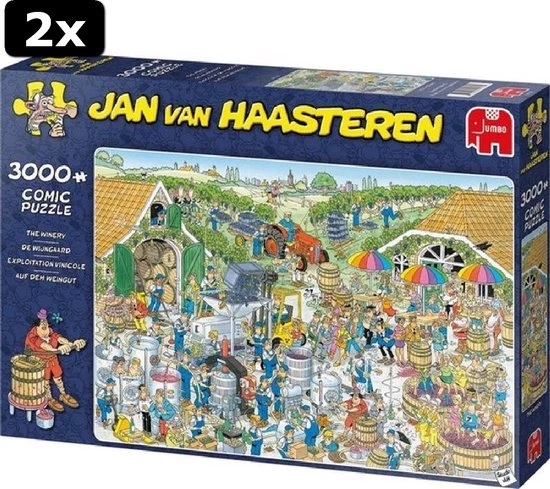 Jan van Haasteren 3000 stukjes De Wijnmakerij, Legpuzzel. Jan van Haasteren heeft ook deze keer weer laten zien dat humor op een prachtige manier kan worden verwerkt in een puzzel. Jan van Haasteren puzzels zijn puzzels met veel kleur en details. Jan van Haasteren tekent al decennia lang humoristische platen die je steeds weer verrassen en laten lachen. De echte fans kennen de specifieke kenmerken van Jan van Haasteren en zoeken in elke puzzel direct naar de haaienvin, Sinterklaas, de handjes, het kunstgebit en Jan???s zelfportret. Jumbo heeft tientallen Jan van Haasteren puzzels in de collectie van 54 tot maar liefst 5.000 puzzelstukjes.