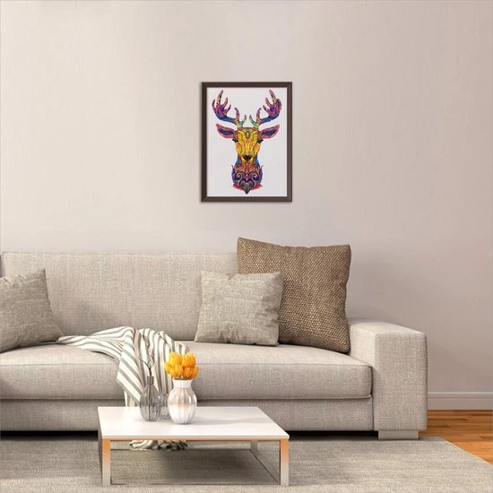 Eenmaal in elkaar gezet is de dierenpuzzel perfect als decoratie in huis, bijvoorbeeld ingelijst aan de muur van de woonkamer.
