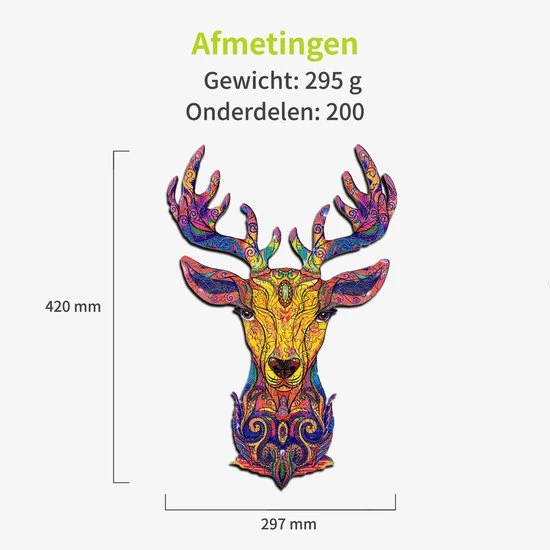 Deze puzzel is gemaakt van hoogwaardig hout wat de puzzel tevens levendige en unieke kleuren geeft.