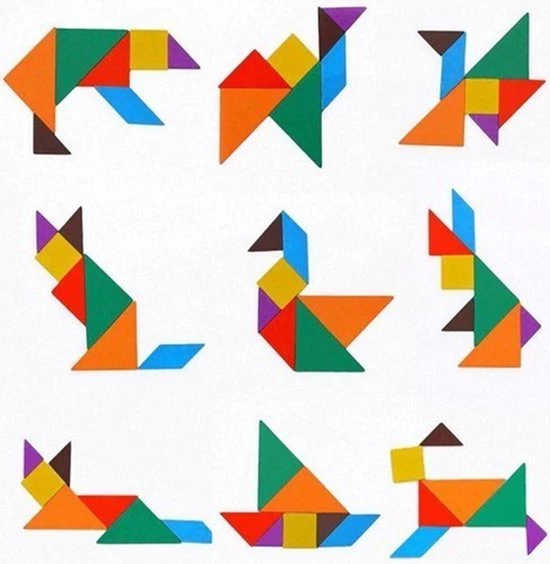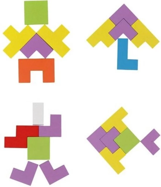 - 3in1 – de puzzel bestaat uit 3 verschillende soorten puzzels voor logisch denkwerk: Tetris, Tangram en T.. Naast de basispuzzels, kan uw kind met een beetje fantasie praktisch alles maken.