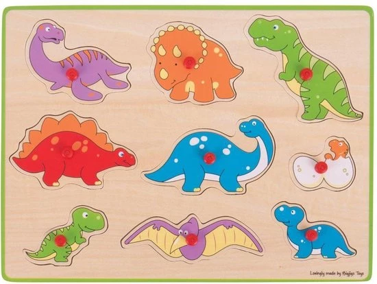 Bigjigs Houten Knoppuzzel Dinosaurussen – 9 Stukjes