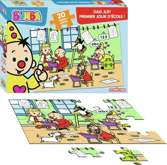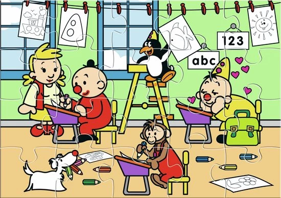 Bumba gaat graag naar school. Dan kan hij zijn leuke juf zien! Puzzel jij met hen mee?