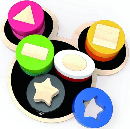 Met deze vromenpuzzel van Mickey Mouse kan jouw kleintje vormen herkennen en zo wordt de fijne motoriek gestimuleerd. Goed voor het bevorderen van de oog- en handco?rdinatie.
