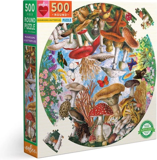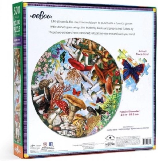 EeBoo Mushrooms And Butterflies Blokpuzzel 500 Stuk(s) Kunst