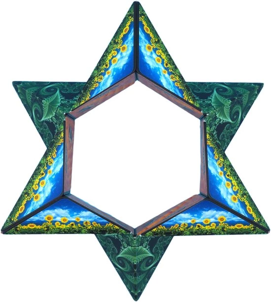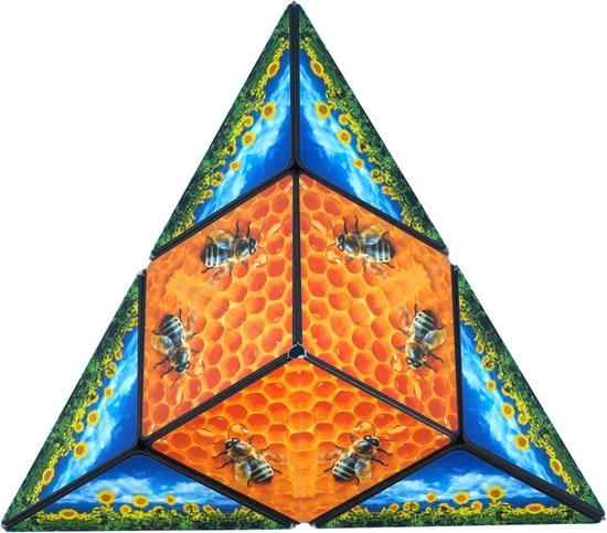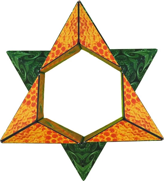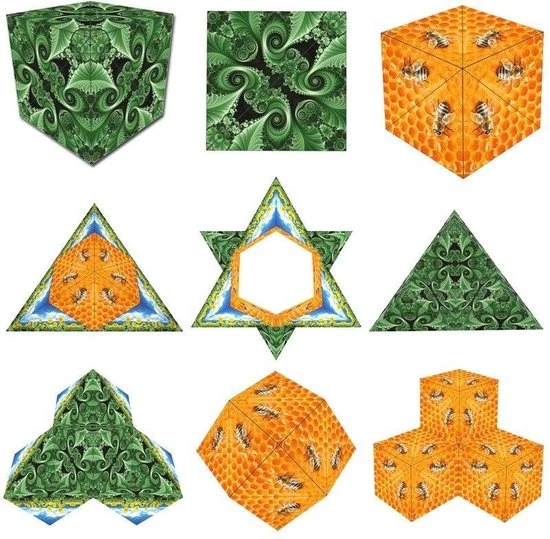 De GeoBender? GeoCube bestaat uit 12 piramides met 36 magneten. De individuele piramides scharnieren aan elkaar. Met behulp van de voegen kan de kubus worden omgezet in verschillende vormen (meer dan 72 !!!). Met behulp van magnetisme kunnen verschillende GeoBender? Cubes met elkaar worden verbonden en kun je geometrische vormen met een hoge complexiteit bouwen. Daag je hersenen uit en heb een geweldige tijd met je GeoBender? Geocube wereld!