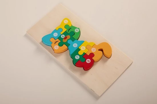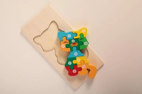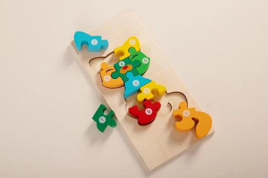 Een praktische leermethode voor rekenen ?n spelen. Een houtpuzzel in de vorm van een vos in elkaar zetten en tegelijkertijd leren tellen van 1 tot 10, hoe leuk is dat?