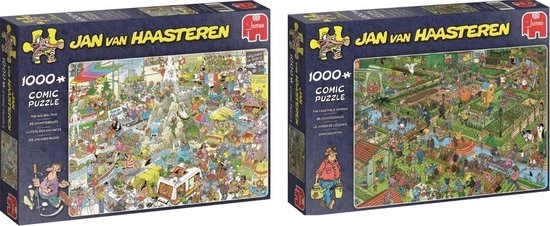 Jan van Haasteren tekent al decennia lang humoristische, kleurrijke platen met veel detail. De doorgewinterde fan zoekt in elke puzzel direct naar de haaienvin, h?t handelsmerk van Jan. Om aan de grote vraag naar Jan van Haasteren puzzels te voldoen, wordt er ook getekend door ‘Jan van Haateren studio’ tekenaars. Samen met Jan werken deze tekenaars aan nieuwe dolkomische platen. In de Jumbo collectie vind je tientallen Jan van Haasteren puzzels van 150 tot 3000 stukjes. Heel veel puzzelplezier!