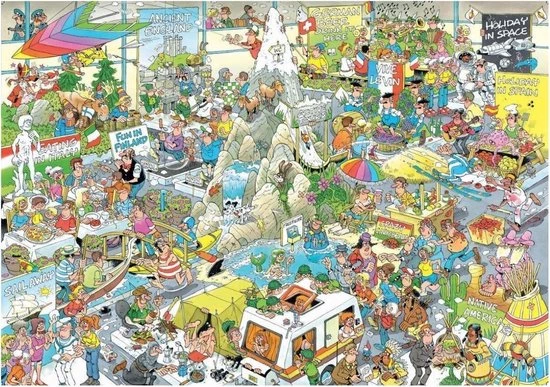 Zodra je Jan van Haasteren Puzzel Vakantiebeurs 3000 Stukjes begint te puzzelen stuit je op het ene na het andere hilarische tafereel. Jan van Haasteren heeft ook deze keer weer laten zien dat humor op een prachtige manier kan worden verwerkt in een puzzel.