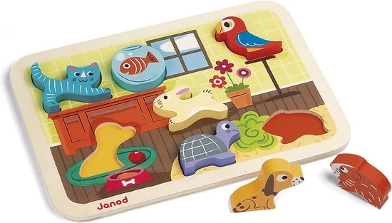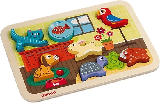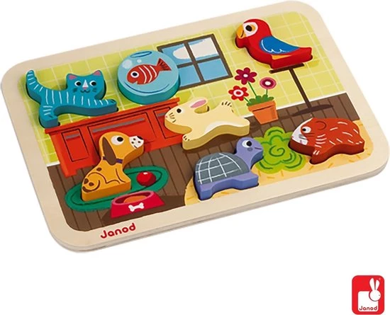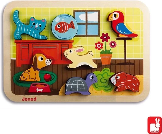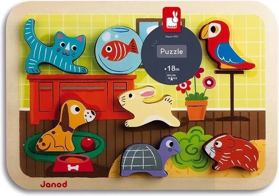 Een mooie houten chunky puzzel met als thema ”huisdieren”. Geschikt voor kinderen vanaf 18 maanden. Afmeting: 30×2,1x21cm.
