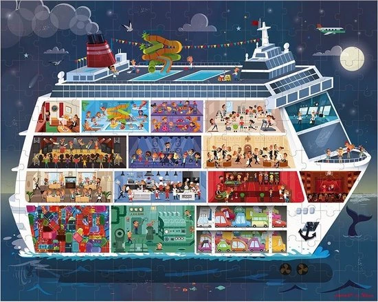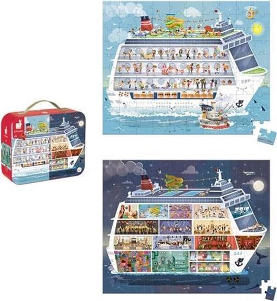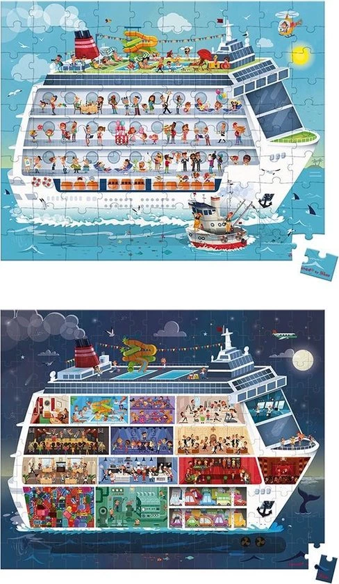 Prachtige kartonnen puzzels van 100 en 200 stukken met de cruise als thema. Afmetingen van elke puzzel: 70 x 56 cm. De grote puzzel (200 stukken) is een cruiseschip ?s nachts en de kleine puzzel (100 stukken) is een cruiseschip overdag. Inclusief voorbeelden.