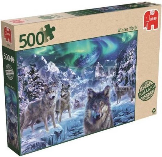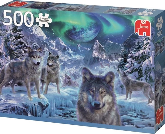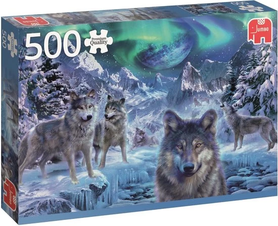 Winter wolfen 500 stukjes. Met de Premium Collection legpuzzels van Jumbo beleeft u uren puzzelplezier. Jumbo staat voor ruim 160 jaar kwaliteit en vakmanschap. Voor het maken van de puzzels wordt alleen gebruik gemaakt van het allerbeste gerecyclede karton van verantwoorde herkomst. De puzzels worden gesneden met speciale dunne messen. Hierdoor behoudt elk puzzelstukje zijn optimale pasvorm en zorgen de smalle naden voor een extra glad en bijna naadloos eindresultaat.