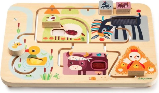 Lilliputiens Houten Schuifpuzzel Voel-doolhof – Boerderij