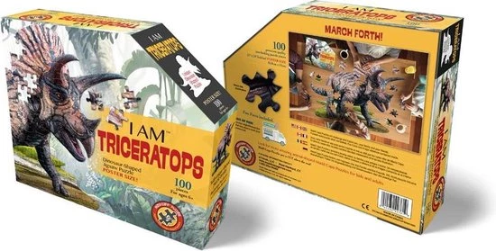 Beleef leuke avonturen met deze supergave triceratops -puzzel. Leg hem stukje voor stukje in elkaar en laat de afbeelding tot leven komen. De puzzel bestaat uit maar liefst 100 stukjes, hier ben je wel even zoet mee!
