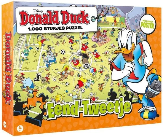 Donald Duck is het vrolijkste weekblad van Nederland! Beleef de spannende en grappige avonturen van Donald en zijn neefjes, Katrien, oom Dagobert, de Zware Jongens en andere inwoners uit Duckstad. Deze puzzel is opgebouwd uit 1000 stukjes. Geschikt voor kinderen vanaf 6 jaar.