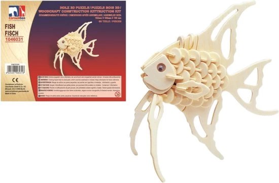 Houten 3D puzzel vis bouwpakket. Houten vis 3D puzzel om zelf in elkaar te zetten, met instructies. Materiaal: licht hout (triplex). Afmetingen: ongeveer 23 x 18,5 x 0,3 cm Niet geschikt voor kinderen onder de 3 jaar. 3D vis dieren bouwspeelgoed.