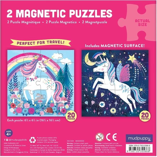 Mudpuppy magnetische puzzel Magische Eenhoorn dag & nacht – 2x 20 stukjes