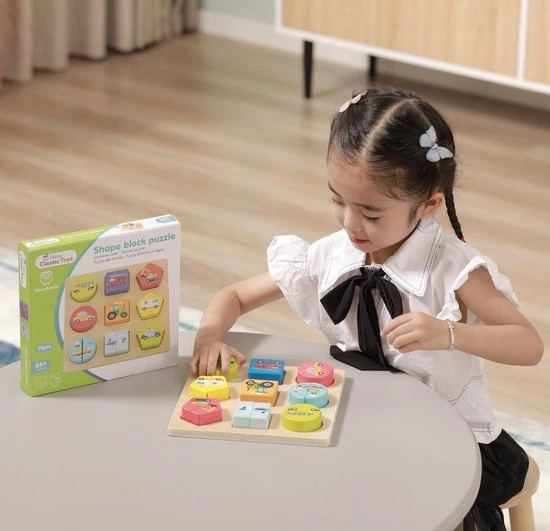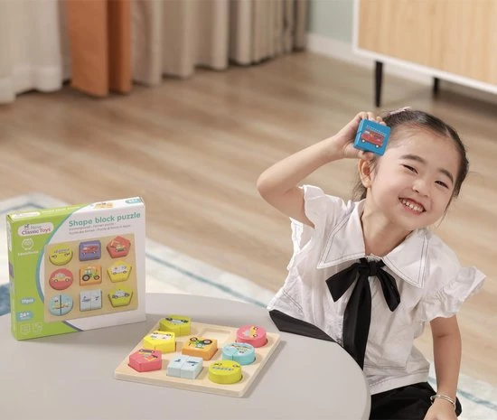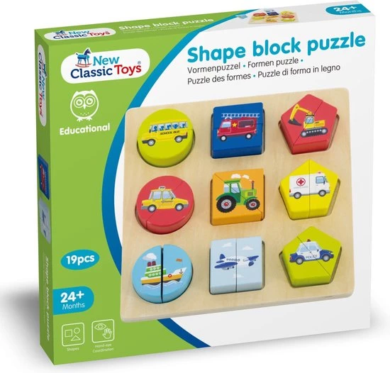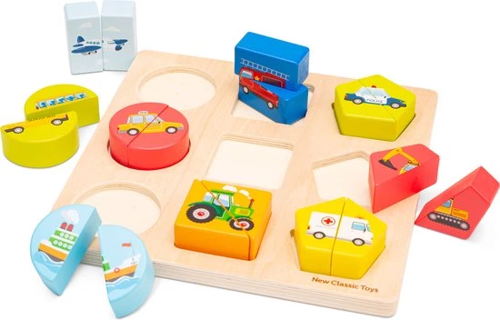 Ontdek de wereld van transport en voertuigen met deze houten blokpuzzel van New Classic Toys. Deze puzzel wordt geleverd met 9 voertuigen in verschillende kleuren en geometrische vormen. Met extra dikke puzzelstukjes, makkelijk vast te pakken voor kinderen. Met een boot, een vliegtuig, een ambulance, een schoolbus, een brandweerwagen, een graafmachine, een taxi, een tractor en een politieauto. Puzzels helpen kinderen waardevolle vaardigheden te ontwikkelen door middel van een activiteit die ze leuk vinden, zoals het ontwikkelen van hun fijne motoriek en het verbeteren van hun hand-oogco?rdinatie. Het laat de kleintjes ook kennis maken met vormen, kleuren, boerderijdieren en tellen. Bij deze puzzel hoort een puzzelbord met achttien puzzelstukjes.