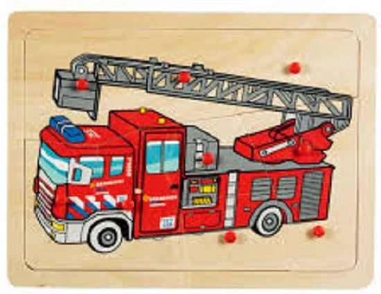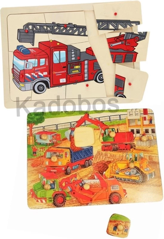 2 leuke houten noppen puzzels – Bouwplaats en Brandweer
