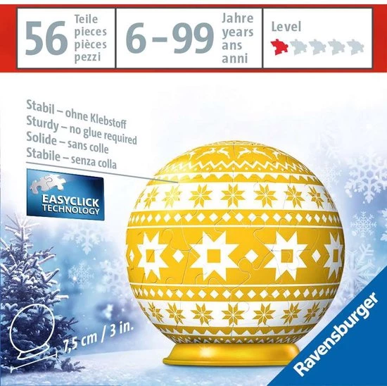 Ravensburger Kerstbal Kerstboom – 3D Puzzel – Puzzelbal – 54 Stukjes – Geel