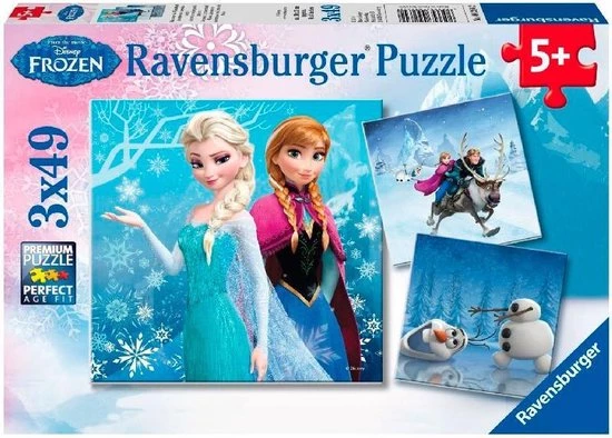 Ontsnap uit de realiteit en stap in de wereld van Ravensburger puzzels. Tijdens het puzzelen ontdekken kinderen hun grootse vaardigheden. Echt puzzelen met 49 stukjes. Vanaf vijf jaar kunnen kinderen een puzzel van 49 stukjes maken. De drie afbeeldingen in 1 doos zorgen voor de nodige afwisseling. Dankzij de met de hand gemaakte stansmessen is de vormvariatie van de stukjes oneindig. Kinderen vanaf 5 jaar zullen genieten van de Avontuur in Winterland puzzels met 49 stukjes. Ravensburger puzzels met 49 stukjes met als thema Frozen.