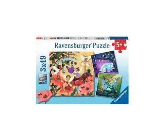 Ontsnap uit de realiteit en stap in de wereld van Ravensburger puzzels. Tijdens het puzzelen ontdekken kinderen hun grootse vaardigheden. Echt puzzelen met 49 stukjes. Vanaf vijf jaar kunnen kinderen een puzzel van 49 stukjes maken. De drie afbeeldingen in 1 doos zorgen voor de nodige afwisseling. Dankzij de met de hand gemaakte stansmessen is de vormvariatie van de stukjes oneindig. Kinderen vanaf 5 jaar zullen genieten van de Eenhoorn, draak en fee puzzels met 49 stukjes. Ravensburger puzzels met 49 stukjes met als thema Fantasy.