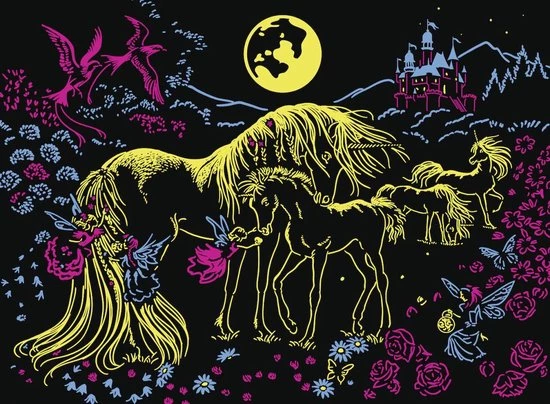 Ontsnap uit de realiteit en stap in de wereld van Ravensburger-puzzels. Tijdens het puzzelen ontdekken kinderen hun grootse vaardigheden. XXL-puzzels voor XXL-puzzelplezier. De XXL-grote puzzelstukken zijn eenvoudiger te leggen. Het resultaat is een kunstwerk op posterformaat dat in geen enkele kinderkamer misstaat. En deze starline puzzel geeft licht in het donker! Dankzij de met de hand gemaakte stansmessen is de vormvariatie van de stukjes oneindig. Kinderen vanaf 6 jaar zullen genieten van de Eenhoorns in de maneschijn puzzel met 100 stukjes met als thema fantasy.