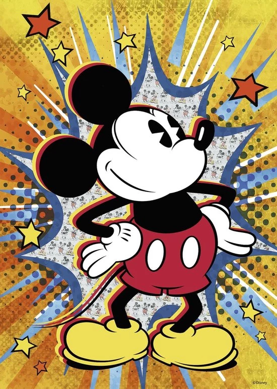 Ontsnap uit de realiteit en stap in de wereld van Ravensburger puzzels. Deze Ravensburger puzzel van 1000 stukjes is geschikt voor zowel beginnende als ervaren puzzelaars. En omdat onze geliefde puzzels een standaard formaat hebben, kun je het resultaat inlijsten en ophangen. Dankzij de met de hand gemaakte stansmessen is de vormvariatie van de stukjes oneindig. Jong en oud zullen genieten van deze retro Mickey puzzel met 1000 stukjes.