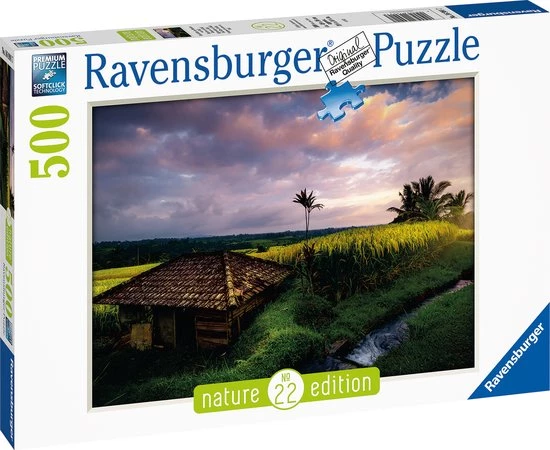 Ontsnap uit de realiteit en stap in de wereld van Ravensburger-puzzels. Deze Ravensburger puzzel van 500 stukjes is de perfecte eerste stap naar de wereld van de grote puzzels. Ideaal ook voor puzzelaars die alleen op zoek zijn naar een puzzel voor tussendoor. Dankzij de met de hand gemaakte stansmessen is de vormvariatie van de stukjes oneindig. Jong en oud zullen genieten van deze Rijstvelden in Bali puzzel met 500 stukjes. Nature Edition – Fascinerende natuurOnze wereld zit vol prachtige plekken en momenten, die de zintuigen prikkelen en ons plezier geven. Ontdek met de Nature Edition puzzels de schoonheid van de aarde en laat u betoveren door schitterende afbeeldingen voor unieke momenten.