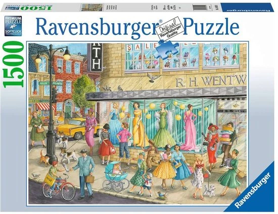Ontsnap uit de realiteit en stap in de wereld van Ravensburger-puzzels. Heb je al wat ervaring met puzzels van 1000 stukjes? Dan wordt het tijd voor een nieuwe uitdaging: onze puzzel van 1500 stukjes! Als je op zoek bent naar langer puzzelplezier, maar met een gemiddelde moeilijkheidsgraad, dan is dit de juiste puzzel voor jou. Dankzij de met de hand gemaakte stansmessen is de vormvariatie van de stukjes oneindig. Jong en oud zullen genieten van deze Sidewalk Fashion puzzel met 1500 stukjes.