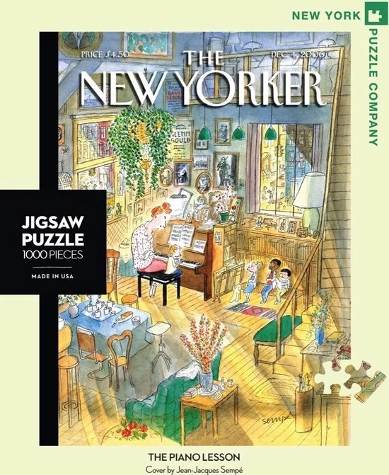 De omslagen van de New Yorker hebben de lezers van het tijdschrift bijna een eeuw lang vermaakt. Met onge?venaarde visuele verfijning en humor laten ze geen enkel onderwerp aan zich voorbij gaan. Een reeks buitengewone kunstenaars blijft onuitwisbare beelden cre?ren die oneindig gevarieerd zijn in stijl en toon, of het nu grillig, provocerend, sereen of grappig is. Deze New Yorker cover is ontworpen door kunstenaar Jean-Jacques Semp?, gepubliceerd in 1997. De puzzel heeft 1000 stukjes en heeft een linnen stijl afwerking zodat de puzzel minder glimt. Aanbevolen leeftijd: 13+ jaar.