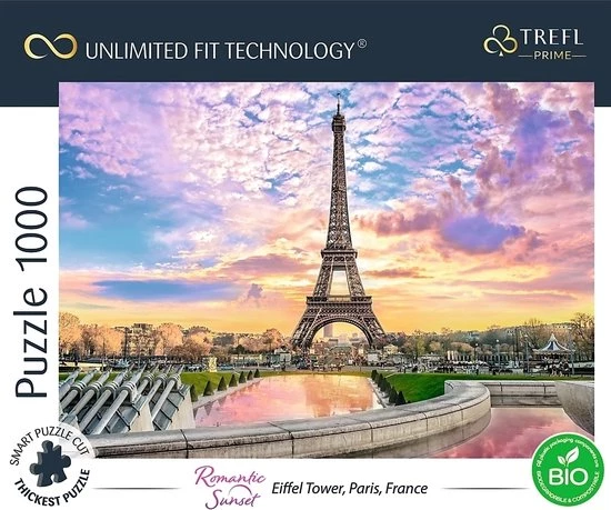 De Trefl Prime Eiffeltoren Parijs puzzel – 1000 stukjes is gemaakt voor echte puzzelliefhebbers. De afmetingen van de puzzel zijn: 683 x 480 mm. De puzzels zijn gemaakt van hoogwaardige materialen met behulp van het dikste karton, unieke vormen en een speciale snijmethode. Zo kunnen we een individuele collage maken en de hele puzzel gemakkelijk overbrengen. Bovendien zijn de afzonderlijke elementen van de producten gemaakt van ecologische materialen. De stickers op de doos zijn gemaakt van biologisch afbreekbare folie. De producten zijn niet in krimpfolie verpakt.
