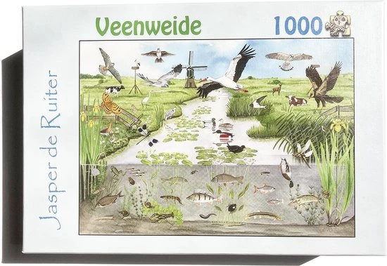 Waan je tijdens het maken van deze puzzel even in het weidelandschap van Nederland met zijn boerenslootjes, de zingende weidevogels, de libellen die boven het water vliegen, de ooievaar op het nest, de gele lis die de waterkanten opfleuren en de vlinders die van bloem naar bloem vliegen. Ook onderwater is veel te beleven, zoals onderwaterdieren als vissen, libellenlarven, watertorren, kikkers en kikkervisjes.